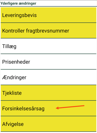 Tilgængelig i mobilenhed = App.ForceDelayReasonOnDelay = "true". Kræv årsag og kommentar ved forsinket levering = |