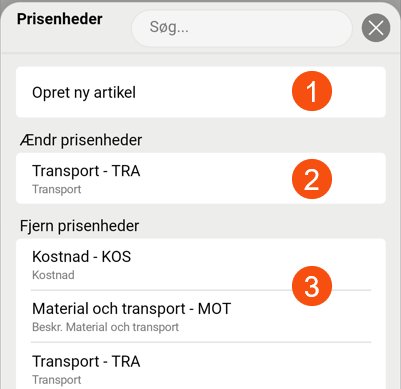 De prisheder, du selv tilføjer, er listet under Slet artikler (3).
