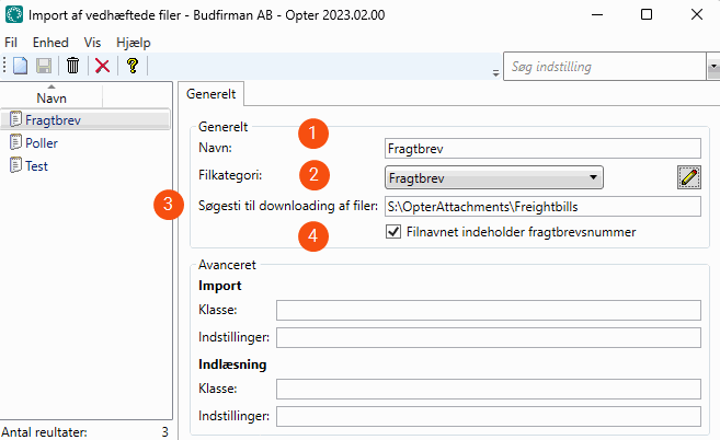 Sådan har budfirmaet konfigureret importfunktionen til fragtbreve i Opter: