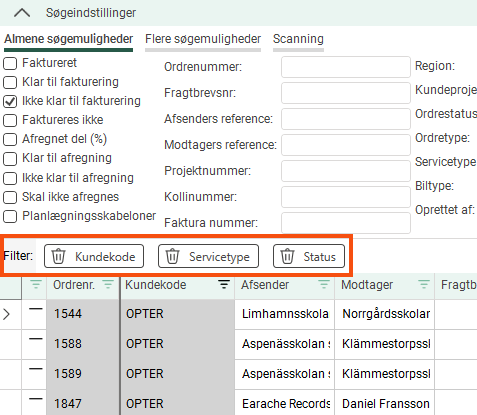 (missing or bad snippet)Hvis du filtrerer på nogle af kolonnerne, vises de som knapper lige over listen. Med disse knapper kan du også deaktivere filtrene.