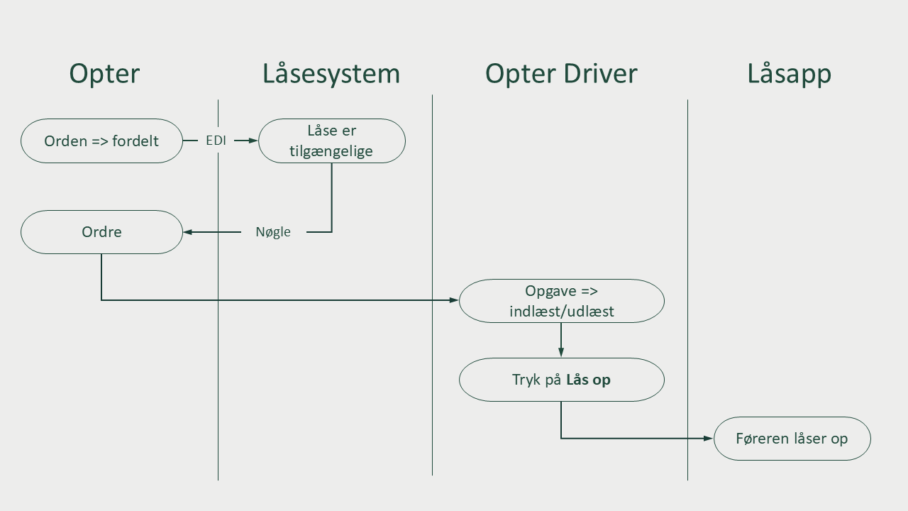 Når en ordre får status Fordelt i Opter, sendes der en anmodning via EDI til låsesystemet.