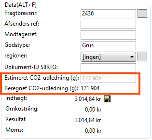 Den beregnede CO2-udledning for opgaven er derefter baseret på den manuelt indtastede afstand på ordren.