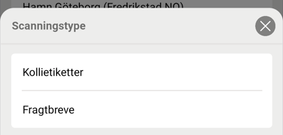 Klik på Fragtbrev eller Kolli, afhængigt af, hvad du skal scanne.