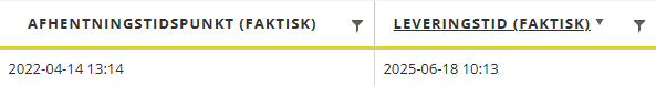 Kolonnerne Afhentningstidspunkt (faktisk) og Leveringstid (faktisk) indeholder nu både dato og klokkeslæt, hvilket gør det lettere at kontrollere leveringsnøjagtigheden direkte i webportalerne. Kolonnerne hedder Lastet (faktisk tid) og Leveret (faktisk tid) i indstillingerne internetordre.