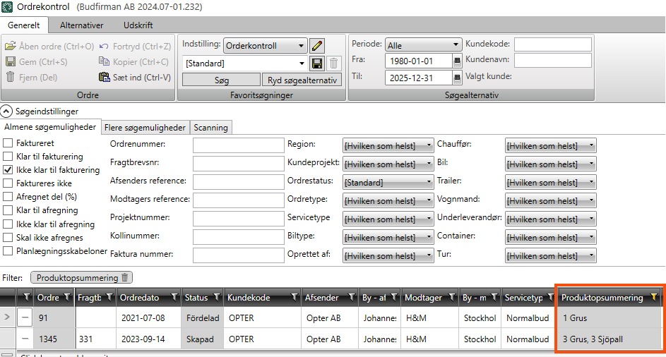 Konsolideringstype er nu tilgængelig som en søgemulighed i bestillingskontrollen på fanen Generelt, under Søgeindstillinger, på fanen Flere søgemuligheder.