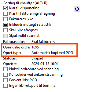 Det er nu muligt at sætte status for den oprindelige ordre tilbage til den første i livscyklussen, og ressourcen fjernes fra den oprindelige ordre, når du frigiver en ordre fra en samlastningsordre (i ordremodtagelse eller disponering). Sæt kryds på Nulstil status, når oprindelige ordrer frigøres fra samlastningsordrer ved samlastningstypen.