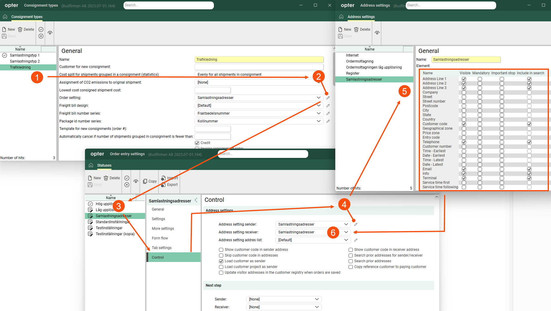 The easiest way to customise the address fields is to start from the consignment type. The settings are made in several different windows, but if you start from the consignment type, it will be a natural flow.