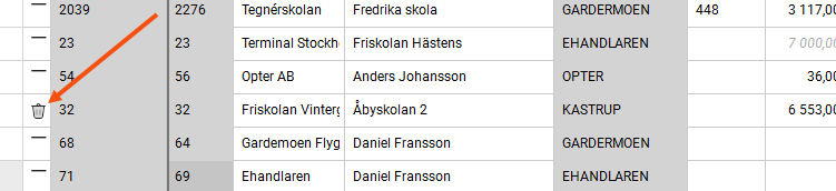 If you want to delete an order, click on that row and press Delete. The line is marked with If you do not want to delete the order, click on the row and press Delete again, or press Ctrl + Z. You can select and undo multiple rows at once by holding down Ctrl or Shift and clicking.