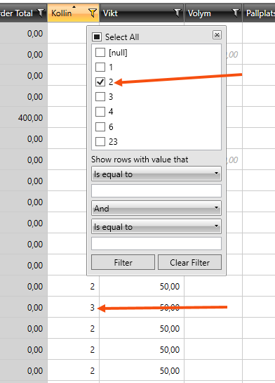 If you have applied a column filter and sorted the search results, the list will not refresh if you change a value, such as the number of parcels. This also applies once you have saved the new number of packages. The search results will not be updated until you filter or re-sort the list.