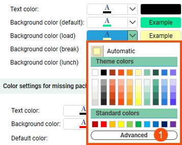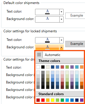Here you can set colours for the dispatch, such as text colour and background colour for locked shipments.