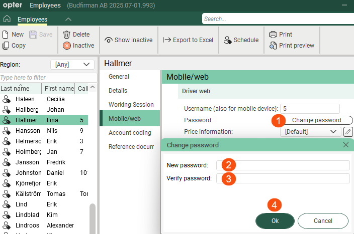 In this window, you register your employees and drivers.
