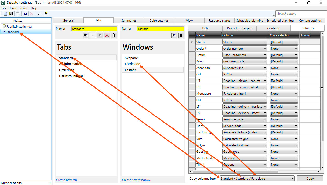 Go to the Columns tab and copy the columns from the Assigned window by clicking on the Copy columns from drop-down list and selecting the appropriate configuration/tab/window from the list.