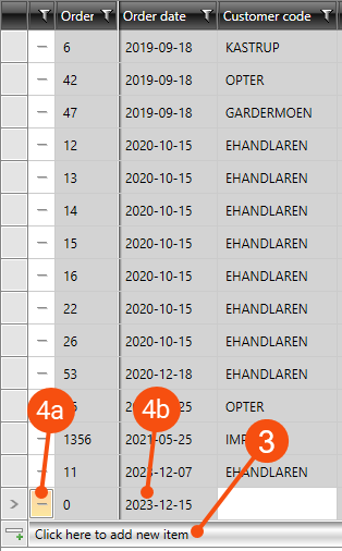 In order check, click on Click here to add new item at the bottom of the order list. A new row is created.
