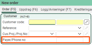The image above shows group Customer, which in this example is displayed on tab Order in the order reception area.