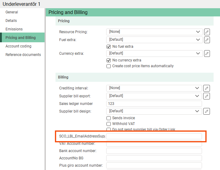 It is now possible to send supplier bills to an email address other than the one to which notifications are sent. Enter the address in the Email supplier bill export field on the Pricing and Billing tab in the subcontractor register. Notifications are still sent to the address listed under Contact Information on the tab General.