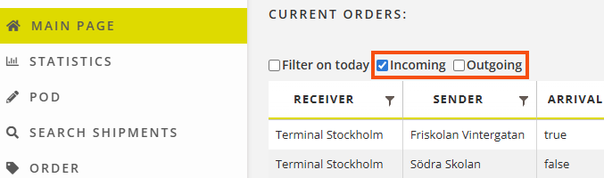 On the terminal website, you can now filter the list on the home page by Incoming and Outgoing orders.