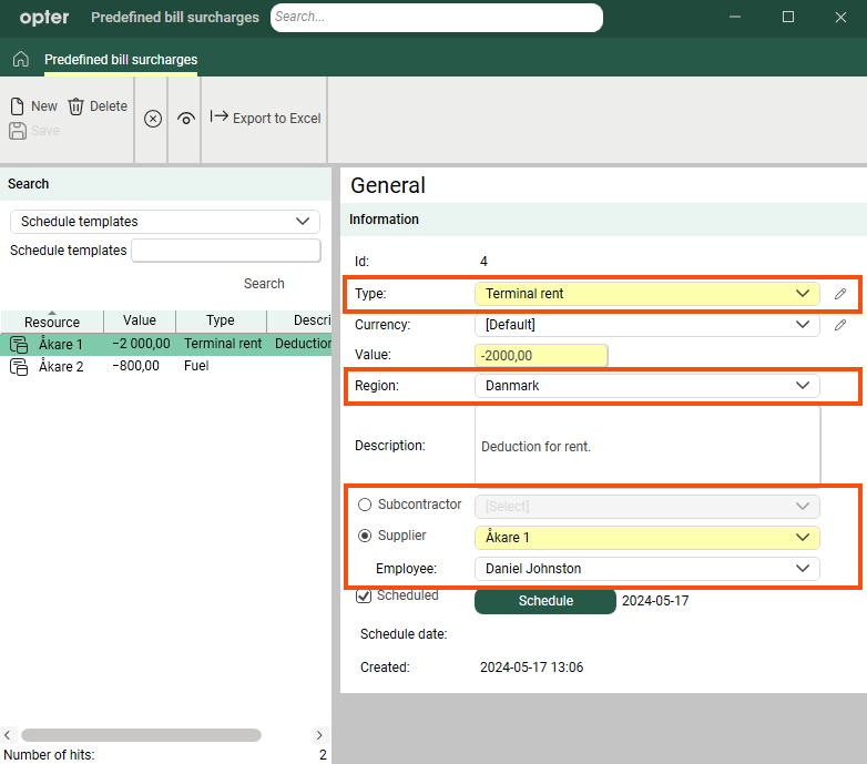 Click on Schedule and configure the schedule. For more information and examples, see Creating schedule templates. This article relates to scheduled orders, but also applies to predefined bill surcharges.