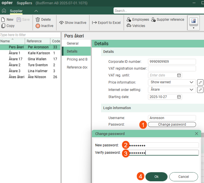 Password Change password (The button is available from Opter 2025.12.00 onwards.) |