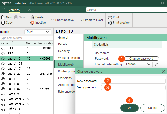 Give the vehicle a call number in the field Number, for example "10". The call number is used, among other things, in dispatch.