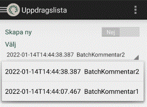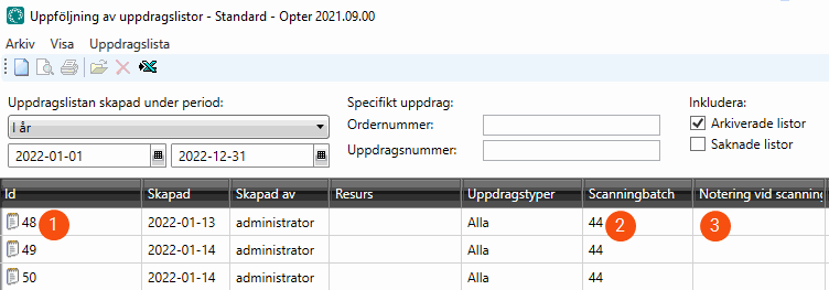 Find the scan batch from which a shipment list should be created, either from an order number/shipment number that you know is included in the scan batch, or from a time interval. The batch ID of the scan is displayed in the Skanniv partii column.