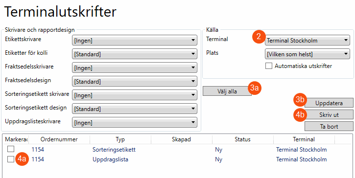 If the terminal staff have scanned a batch previously and chosen to send it to Opter as described above, the shipment list can be printed later on. Proceed as follows: