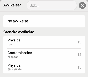 If there are deviations registered on the shipment, a view opens where drivers can see existing deviations and register new ones.