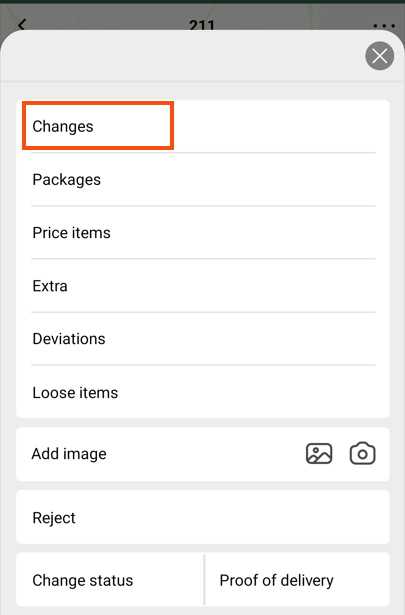 In Opter Driver for iOS and Opter Driver Labs for Android, the driver selects Changes from the menu (