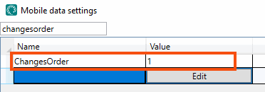 If Muudatused has been set to be displayed (“true” or no value for ChangesPermission), it is also possible to choose where on the menu the option is displayed. For example, if Muudatused should be at the top of the menu, immediately after the next status, select ChangesOrder in the Nimi column of the mobile data settings and enter “1” in the Väärtus column. The lower the number, the higher up the menu it is.