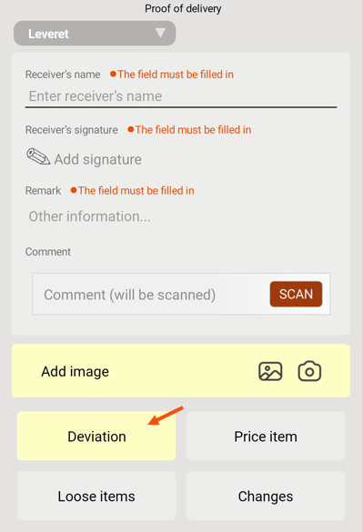 The deviation is registered in the POD view and it is not possible to save the pod until the deviation has been registered.