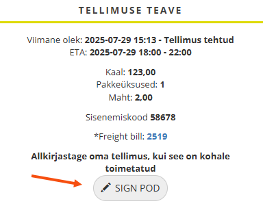 The receiver can sign the proof of delivery in Track & Trace. This way, the recipient does not have to touch the driver's device. To make it easier for the recipient to find the order, the driver can send an SMS with a link directly to the order on Track & Trace. The driver can send XML with a link to Track & Trace if the shipment is in status Korjatud or later in the life cycle.