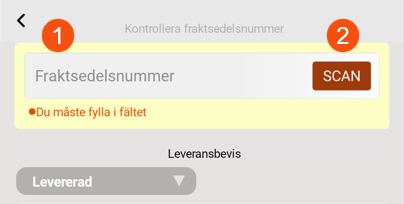 Check that the Freight bill number (1) in the app matches the one on the parcel or consignment note.
