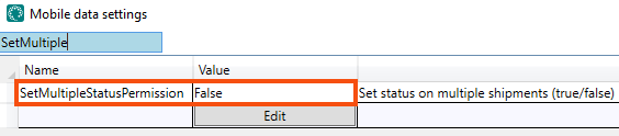 “False”: the driver cannot change the status of several shipments at the same time in the shipment list.