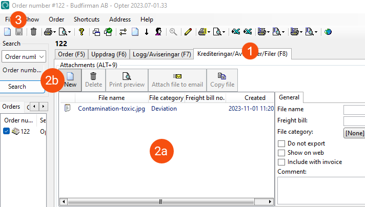It is possible to attach files to an order in order reception, either by dragging and dropping files and emails to the Manused section or by browsing to files. It is also possible to drag and drop files from the Manused section of order reception to the Desktop or Explorer on the local computer, or to an email in Outlook.