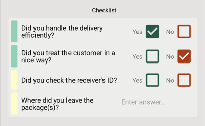 If there is a checklist on an order, the driver is required to fill it in Opter Driver. The checklist is displayed in Opter Driver when the driver finishes the scan during loading and/or unloading.