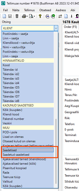 You can search for the consignment orders by selecting Saadetised in the search panel and entering the search criteria.
