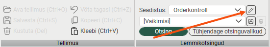 You can save searches you perform frequently so that you can use them again quickly. For more information, see . [Vaikimisi]: Search for today's orders that are not ready for invoicing. You can change the search settings, but they will be reset when you close the control. If you want to save a search, select the criteria you want to search by (1), enter a name in the field (2) and save it (3). You are deleting a saved search with