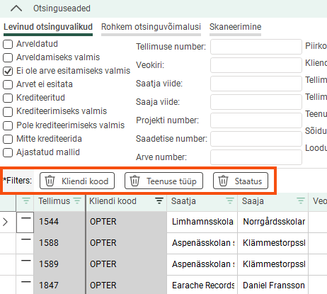 Removes all settings under Otsinguseaded, as well as the customer code and customer name, but the search period is retained. |