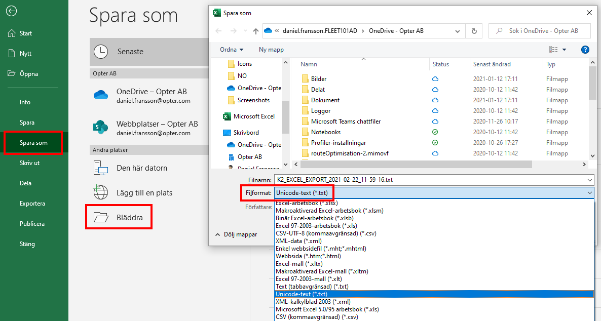 If an Excel file has been created manually and you want to import it, or a file has been exported from a different system, you first have to save it as Unicode text (see points 5–7 in step 1 above). Then import the file as follows: