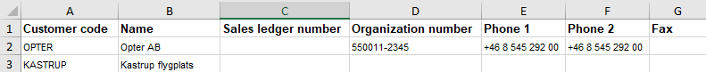 If you already have at least one customer in the customer registry in Opter, you can export it and either edit the Excel file directly or use it as a template for a different Excel file that you want to import.