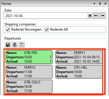 All parts of the Parvlaevad window in dispatch are described in Parvlaevad (panel in dispatch). To use ferries in dispatch, proceed as follows: