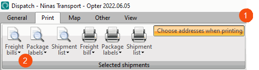 Click on the Prindi menu at the top of dispatch and then select Valige printimisel aadressid (1).