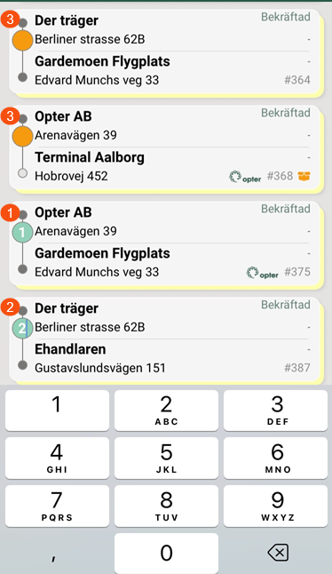 By default, the mission list in Opter Driver is displayed in the same order as in dispatch, i.e. according to the route optimisation.