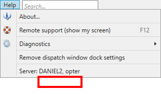Enter the name of the Opter server (SQL server) in the Server field. In an already existing installation of Opter, the server name appears at the bottom of the Abi menu.