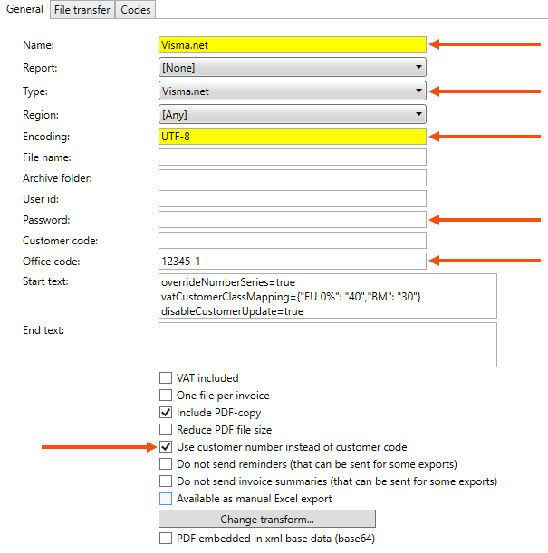 useCustomerClass=true/false true: the customer category from the customer registry in Opter is used as the customer class in Visma.net.