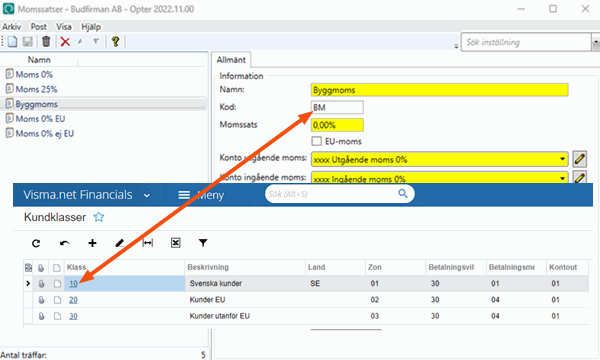 vatCustomerClassMapping Used to map VAT codes/rates in Opter to customer classes in Visma.net. It can be decided that customers with a certain VAT rate (Hinnakujundus tab in the customer registry) should have a certain customer class in Visma.net. See Visma.net for the customer classes.