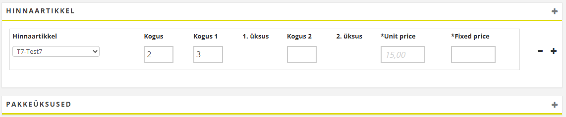 Kogusühik 1 (hinnaartiklid) Kogusühik 2 (hinnaartiklid) |