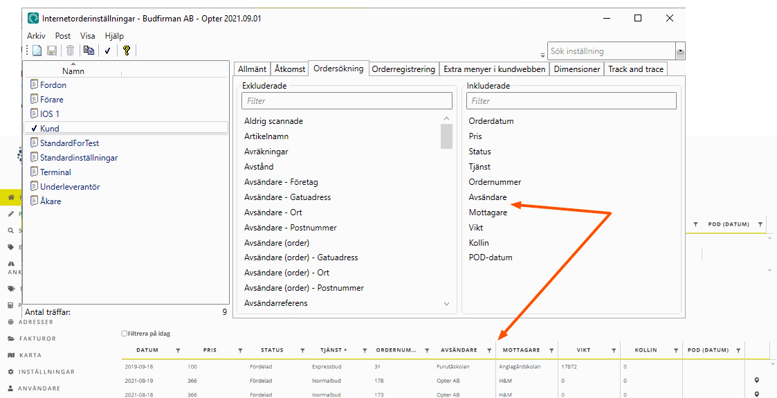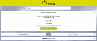 For more information, see Activating signing of POD on Track & Trace and Signing the proof of delivery in Track & Trace. If the function is used to send SMS with links to Track & Trace, Krüpteeritud otsing should also be selected under Otsinguvalikud to hide the order number in the link. Otherwise, the recipient can easily figure out other Order numbers and and search on them. For more information, see Activating SMS with a link to Track & Trace. |