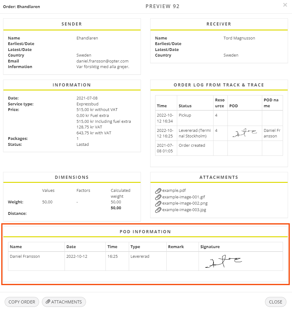 In addition, the POD-teave section is displayed in the detail view if the order has a proof of delivery.