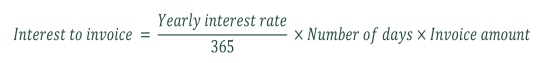 Late payment interest is the interest charged on an invoice that the customer does not pay on time. Late payment interest is calculated as follows in Opter: