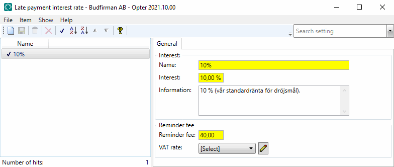 Settings for late payment interest and reminder fees